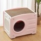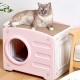 천장의 스크래쳐로 휴식과 놀이를 올인원으로 즐길 수 있는 원터치 간편 조립형 사각 캣 크래쳐 하우스.