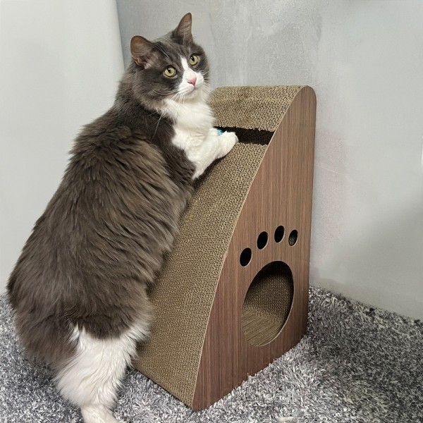 촘촘한 골판지 짜임으로 쉽게 망가지지 않으며, 내부 하우스 형식으로 제작되어 아이들의 편안하고 즐거운 스트레소 해소를 도와주는 수직형 키츠 스크래쳐.