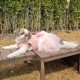 신축성과 조직감이 있는 상의와로 착용감 편안하고 부드러운 고급 연살구색상의 샤 스커트 위에 예쁜리본이 달린 샤원단장식이 돋보이는 드레스 생파,웨딩파티에도 잘어울립니다~