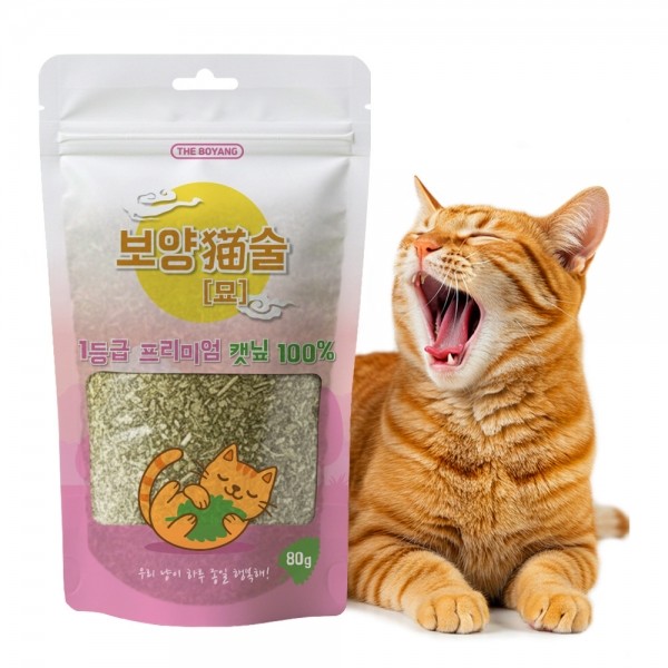 [댕캉스특가]더보양 보양묘술 고양이 자연 건조 캣닢 가루 고양이풀 개박하 캣그라스 캣잎, 80g