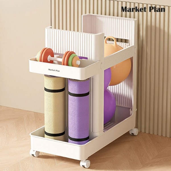 마켓플랜 다용도 피트니스 이동식 2단 수납 정리함