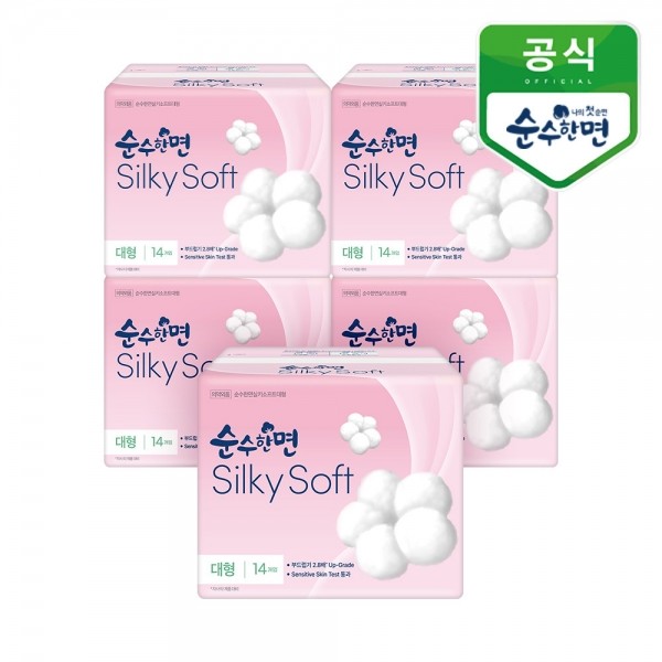 깨끗한나라 순수한면 생리대 실키소프트 대형 14개입 5팩