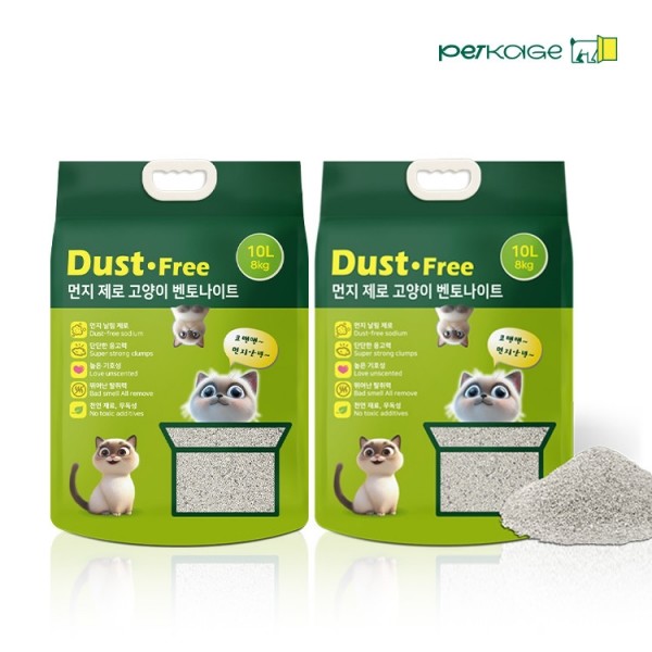 [펫키지] 고양이 모래 먼지 제로 벤토나이트 무향, 8kg x 2팩 / 1박스 [반려동물]