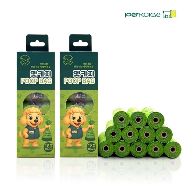 [펫키지] 강아지 배변봉투 친환경 생분해 12롤(180매) x 2팩 [반려동물]