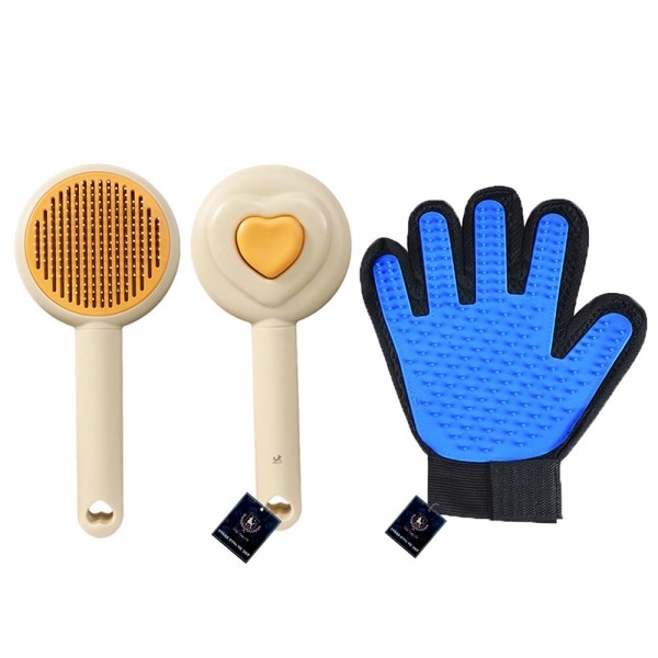 딩동펫 반려동물 실리콘 그루밍장갑 + 원터치 하트 브러쉬 세트