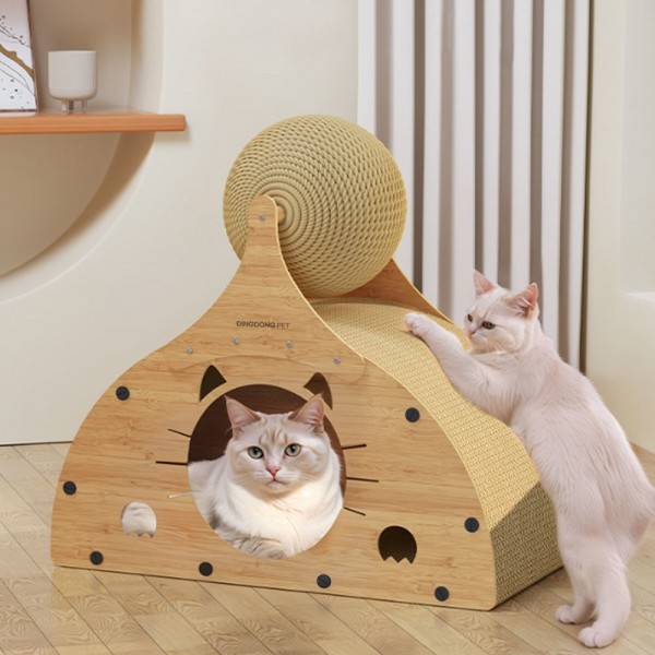 딩동펫 고양이 사이잘 우드 스크래쳐 숨숨집 볼하우스