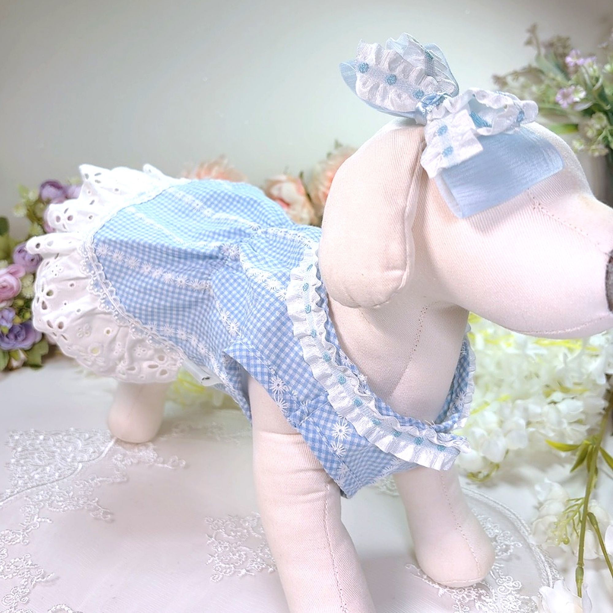 스커트 끝단에 레이스장식되어 있어서 더 귀여워요.