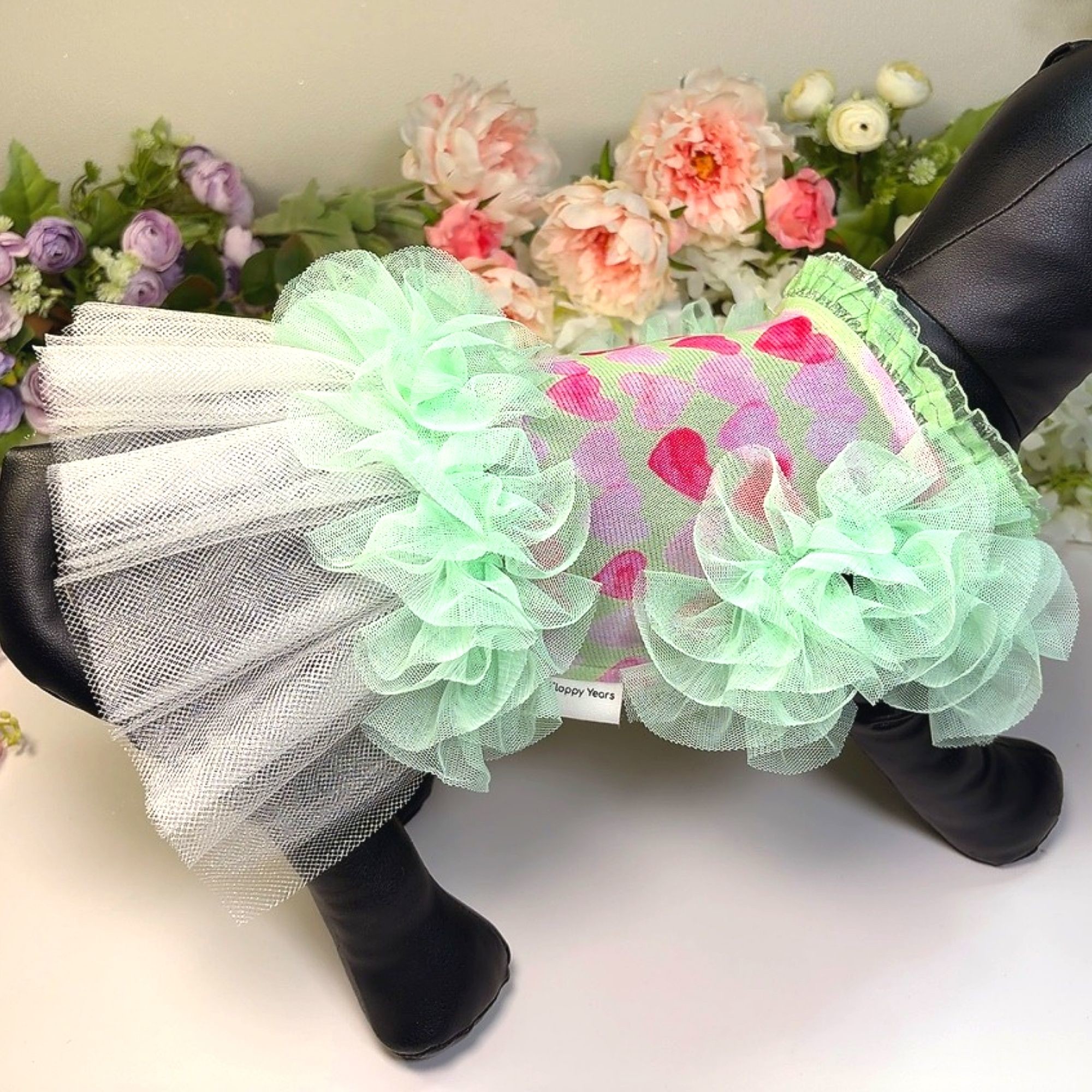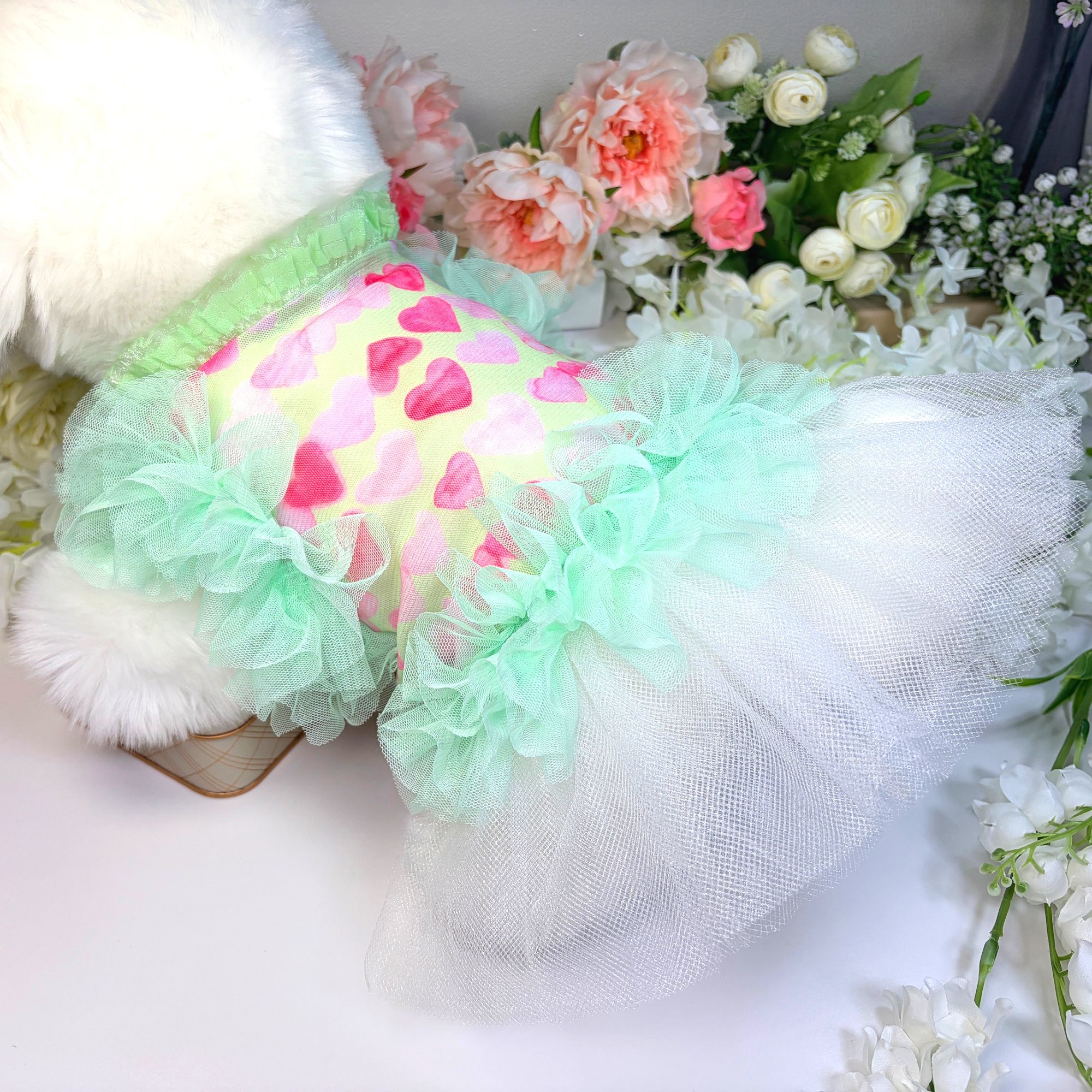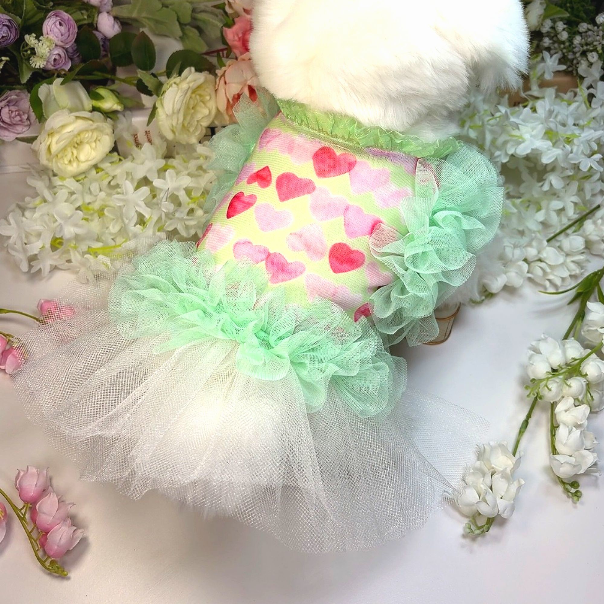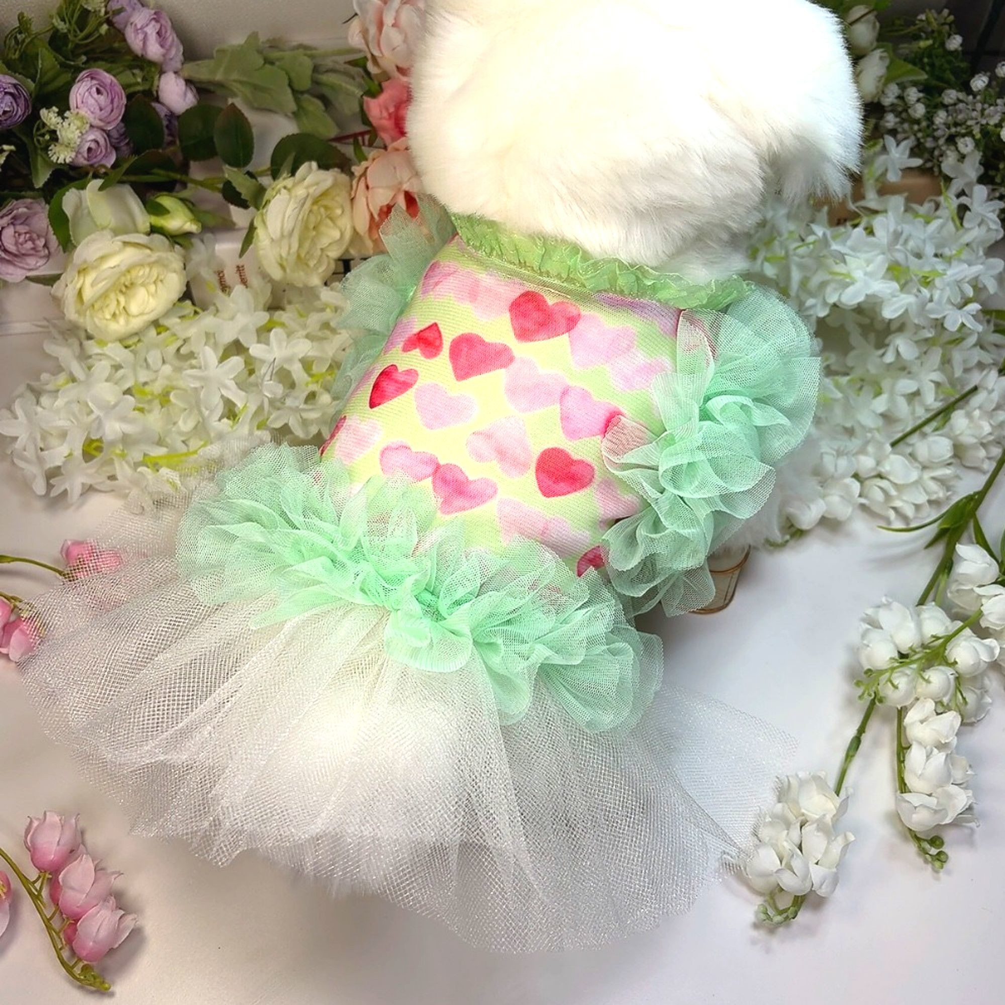하트그린프릴 강아지드레스