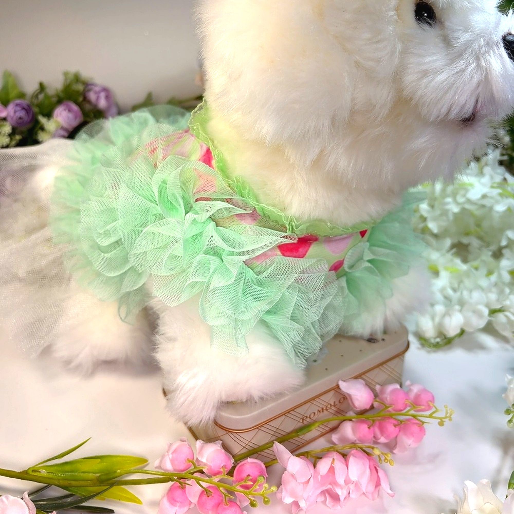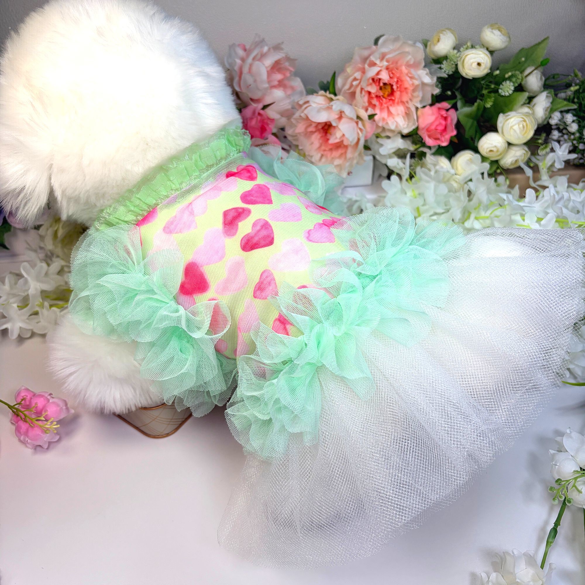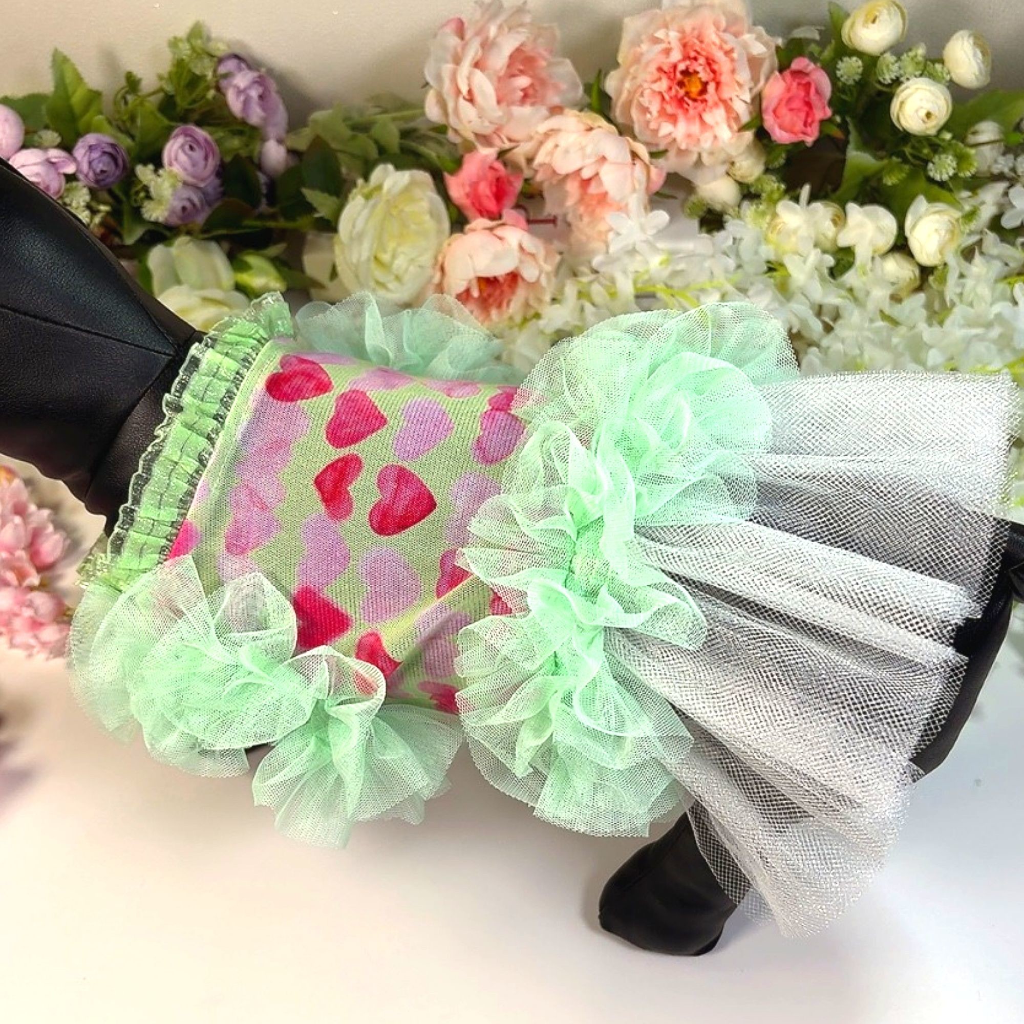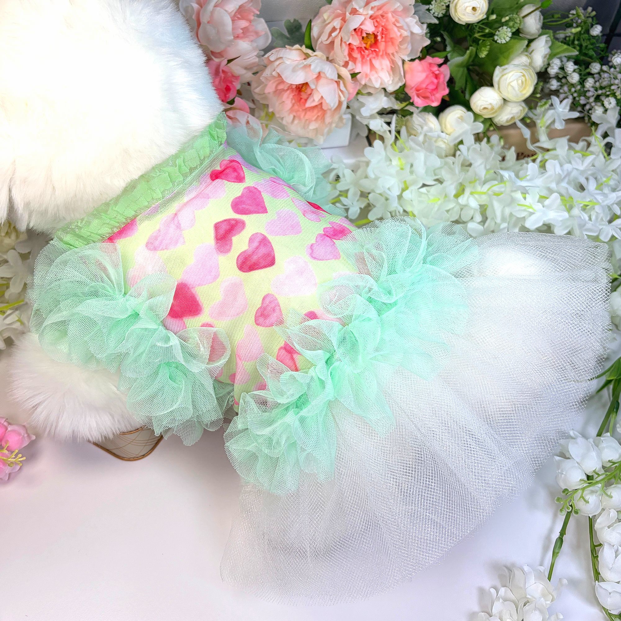 하트그린프릴 강아지드레스
